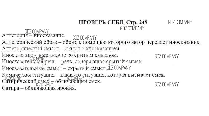 Здесь готовые ответы по Литературе за 5 (пятый) класс от Москвин Учебник Алгоритм успеха (издательство: Вентана-граф от 2020 г.) № Проверь себя (стр. 249)