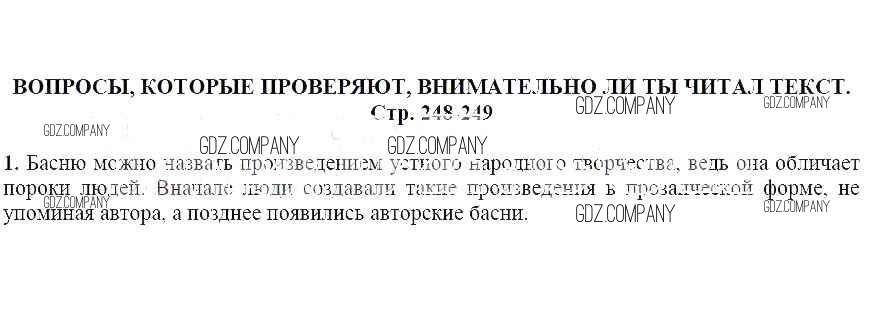 часть 1 / Басня / Вопросы, которые проверяют, внимательно ли ты читал текст (стр. 248-249) / 1