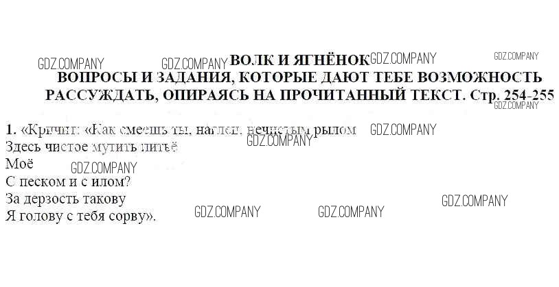 часть 1 / Волк и ягненок / Вопросы и задания, которые дают тебе возможность рассуждать, опираясь на прочитанный текст (стр. 254-255) / 1