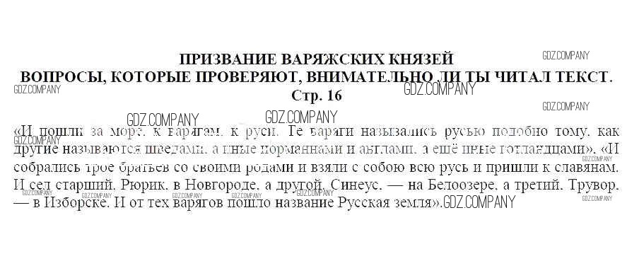часть 2 / Призвание варяжских князей / Вопросы, которые проверяют, внимательно ли ты читал текст (стр. 16)