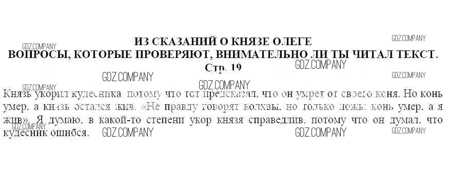 часть 2 / Из сказаний о Князе Олеге / Вопросы, которые проверяют, внимательно ли ты читал текст (стр. 19)