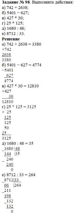 Здесь готовые ответы по Математике за 5 (пятый) класс от Дорофеев, Шарыгин, Суворова, Бунимович, Кузнецова, Минаева, Рослова Учебник (издательство: Просвещение от 2015 г.) № 98