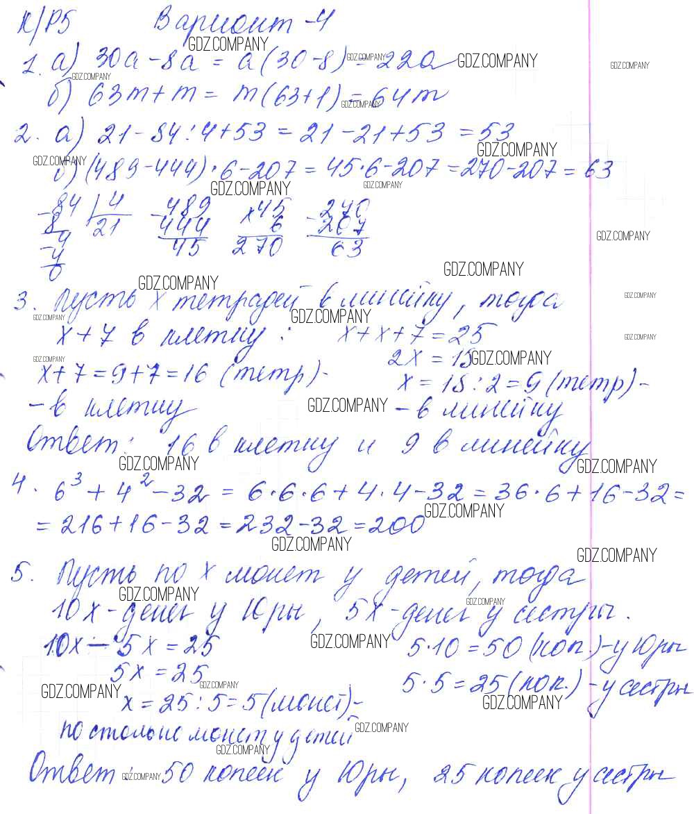 Здесь готовые ответы по Математике за 5 (пятый) класс от Дудницын, Кронгауз Контрольные работы УМК (издательство: Экзамен от 2011 г.) № 4