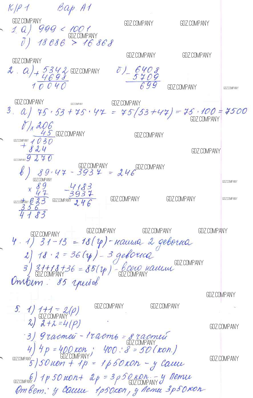 Здесь готовые ответы по Математике за 5 (пятый) класс от Ерина Контрольные работы УМК (издательство: Экзамен от 2020 г.) № 1