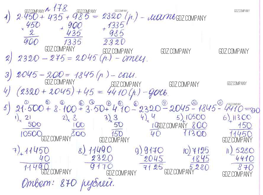 Здесь готовые ответы по Математике за 5 (пятый) класс от Гамбарин, Зубарева Сборник задач и упражнений (издательство: Мнемозина от 2011 г.) № 178