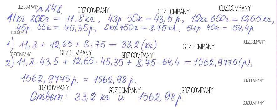Здесь готовые ответы по Математике за 5 (пятый) класс от Гамбарин, Зубарева Сборник задач и упражнений (издательство: Мнемозина от 2011 г.) № 848