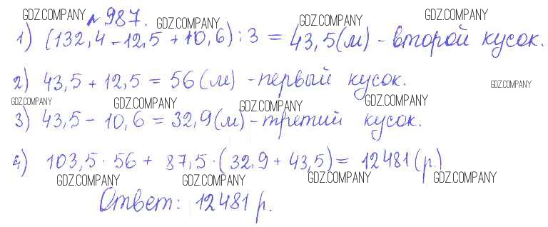 Здесь готовые ответы по Математике за 5 (пятый) класс от Гамбарин, Зубарева Сборник задач и упражнений (издательство: Мнемозина от 2011 г.) № 987