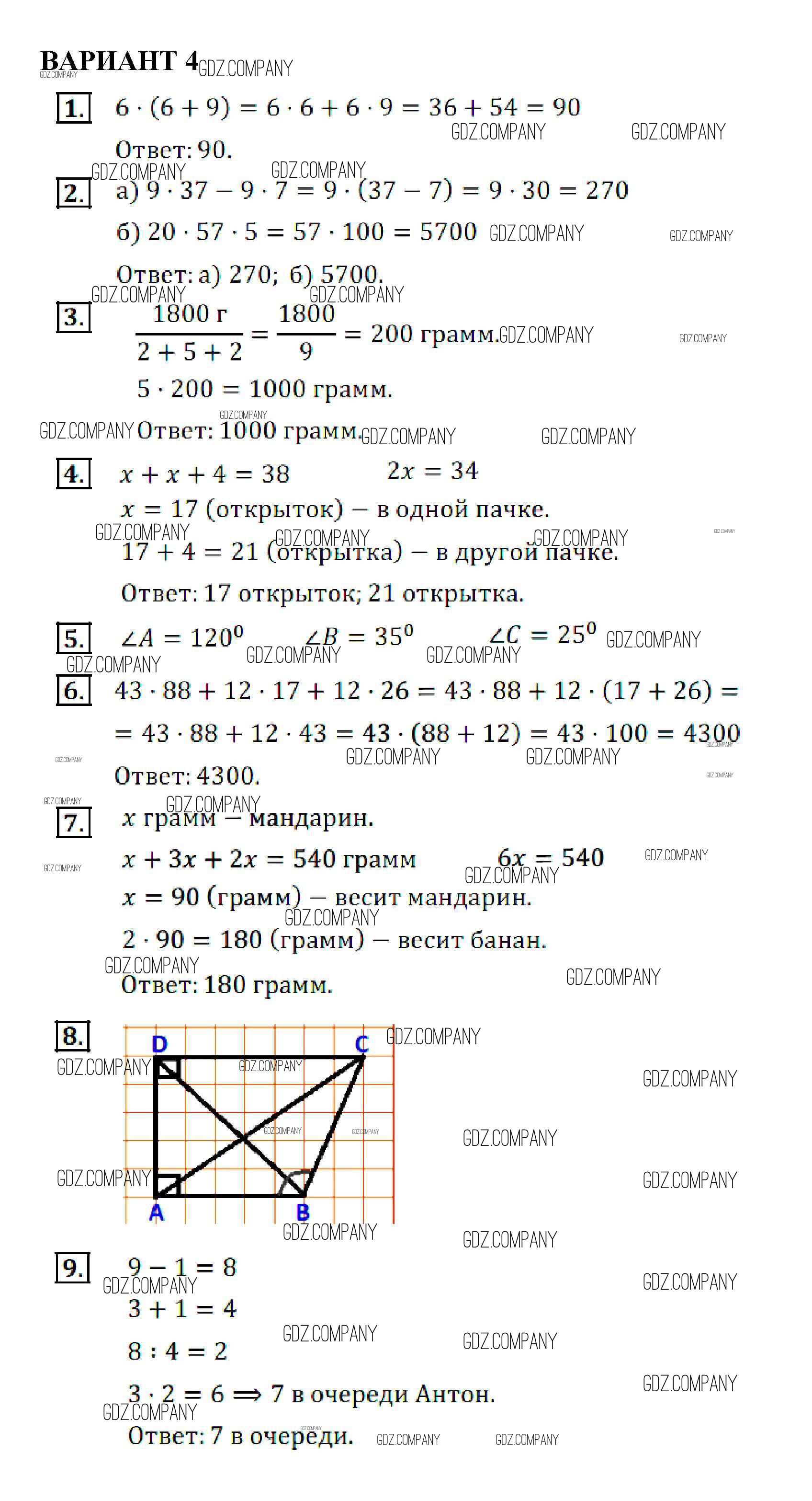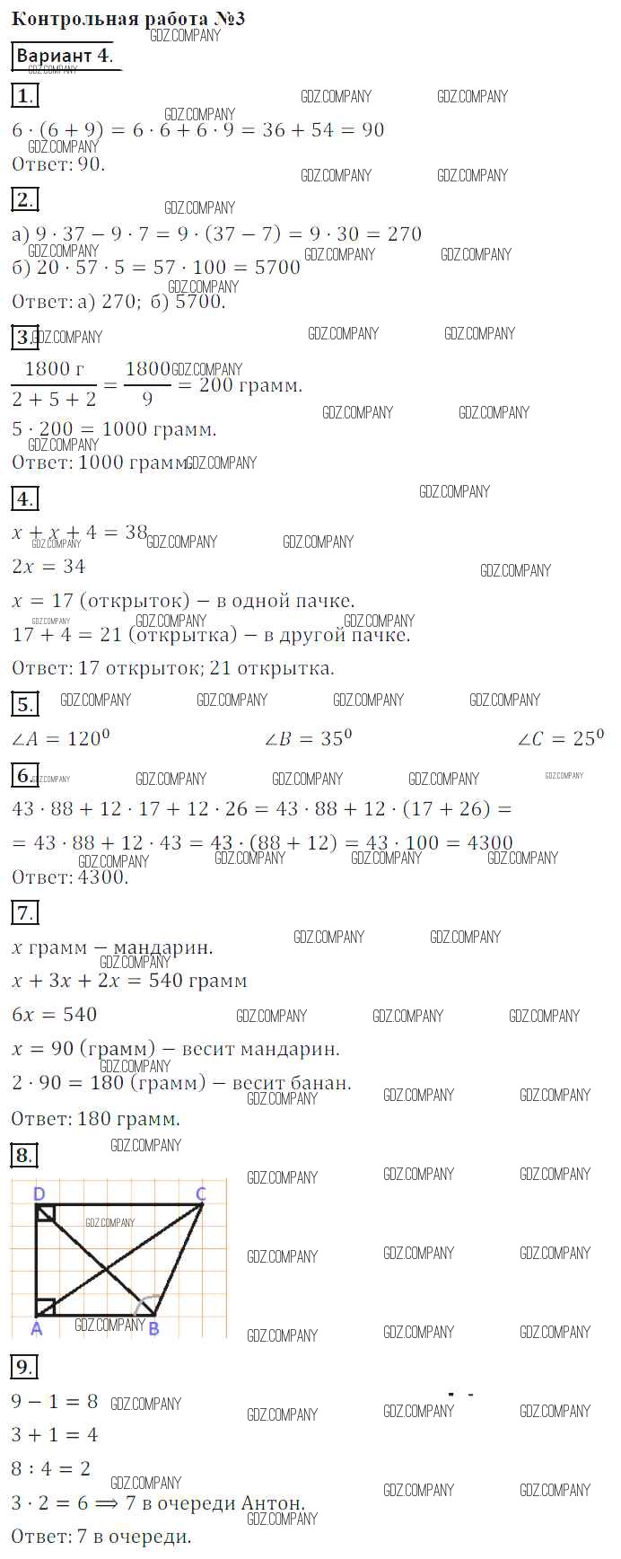 Здесь готовые ответы по Математике за 5 (пятый) класс от Кузнецова, Минаева, Рослова, Суворова Контрольные работы (издательство: Просвещение от 2018 г.) № вариант-4