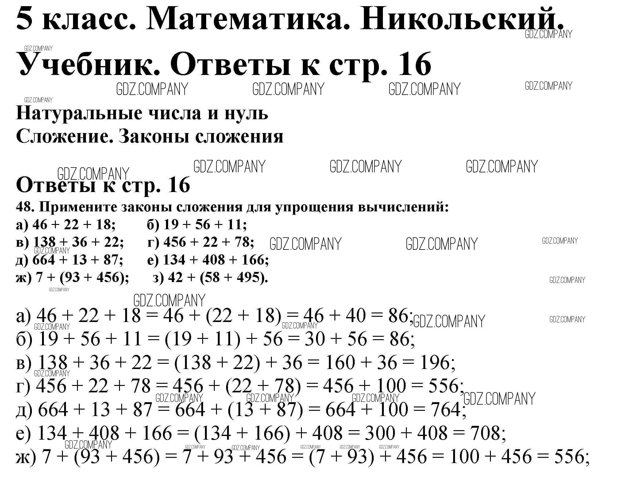 Здесь готовые ответы по Математике за 5 (пятый) класс от Никольский, Потапов, Решетников, Шевкин Учебник МГУ - школе (издательство: Просвещение от 2016 г.) № 48