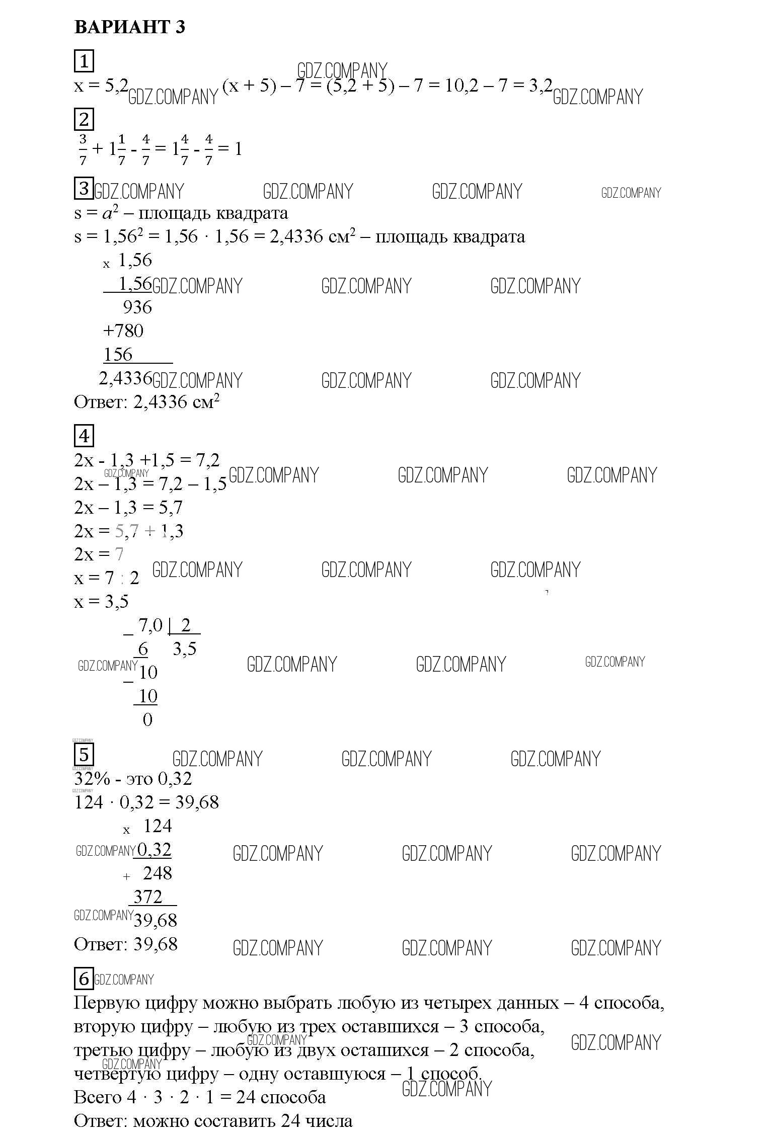 Здесь готовые ответы по Математике за 5 (пятый) класс от Попов Дидактические материалы УМК (издательство: Экзамен от 2017 г.) № вариант №3