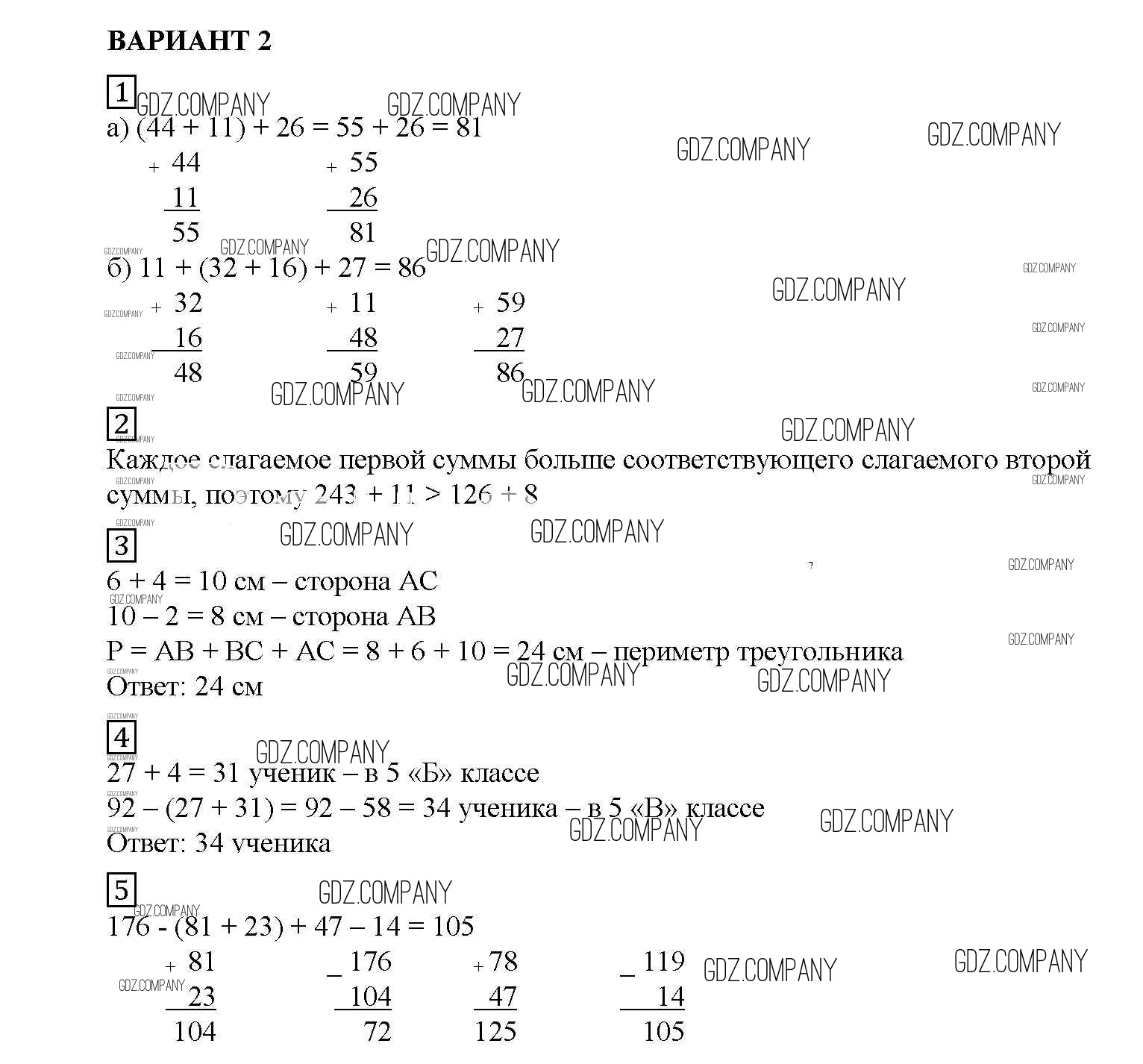 Здесь готовые ответы по Математике за 5 (пятый) класс от Попов Дидактические материалы УМК (издательство: Экзамен от 2017 г.) № вариант №2