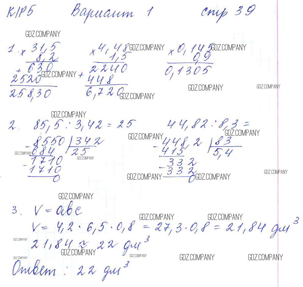 Здесь готовые ответы по Математике за 5 (пятый) класс от Рудницкая Рабочая тетрадь УМК (издательство: Экзамен от 2013 г.) № 39
