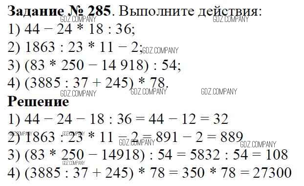 Здесь готовые ответы по Математике за 5 (пятый) класс от Виленкин, Жохов, Чесноков, Шварцбурд Учебник (издательство: Мнемозина от 2013 г.) № 285