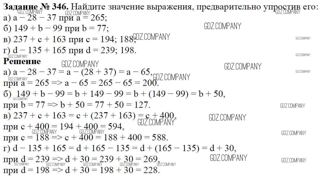 Здесь готовые ответы по Математике за 5 (пятый) класс от Виленкин, Жохов, Чесноков, Шварцбурд Учебник (издательство: Мнемозина от 2013 г.) № 346