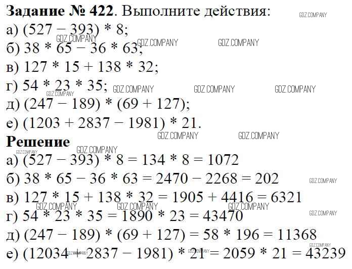 Здесь готовые ответы по Математике за 5 (пятый) класс от Виленкин, Жохов, Чесноков, Шварцбурд Учебник (издательство: Мнемозина от 2013 г.) № 422