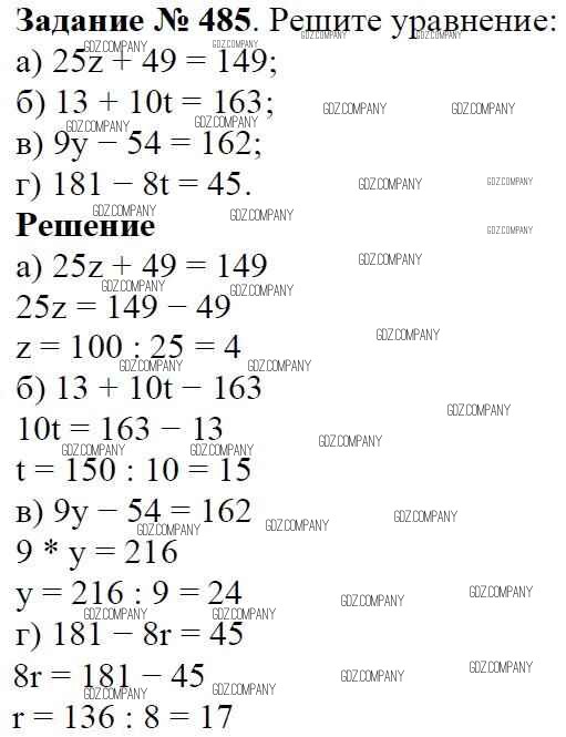 Здесь готовые ответы по Математике за 5 (пятый) класс от Виленкин, Жохов, Чесноков, Шварцбурд Учебник (издательство: Мнемозина от 2013 г.) № 485