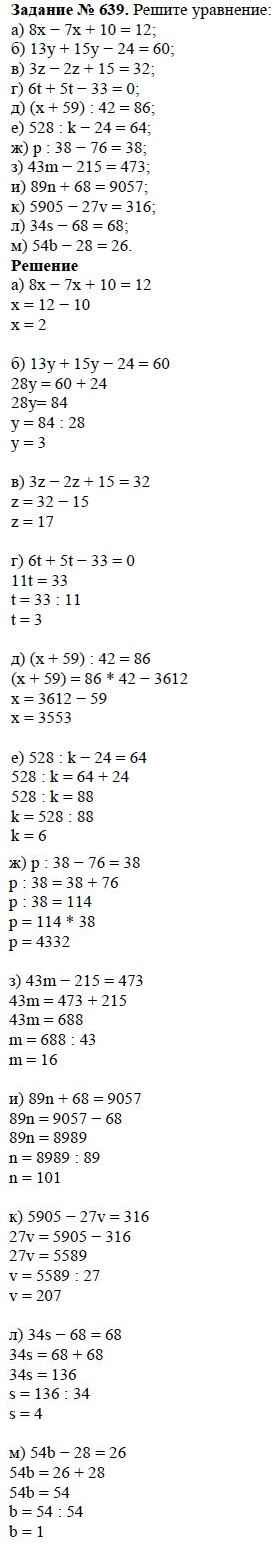 Здесь готовые ответы по Математике за 5 (пятый) класс от Виленкин, Жохов, Чесноков, Шварцбурд Учебник (издательство: Мнемозина от 2013 г.) № 639