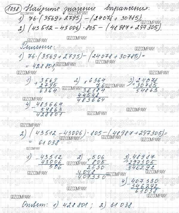 Здесь готовые ответы по Математике за 5 (пятый) класс от Виленкин, Жохов, Чесноков, Шварцбурд Учебник (издательство: Мнемозина от 2013 г.) № 1038