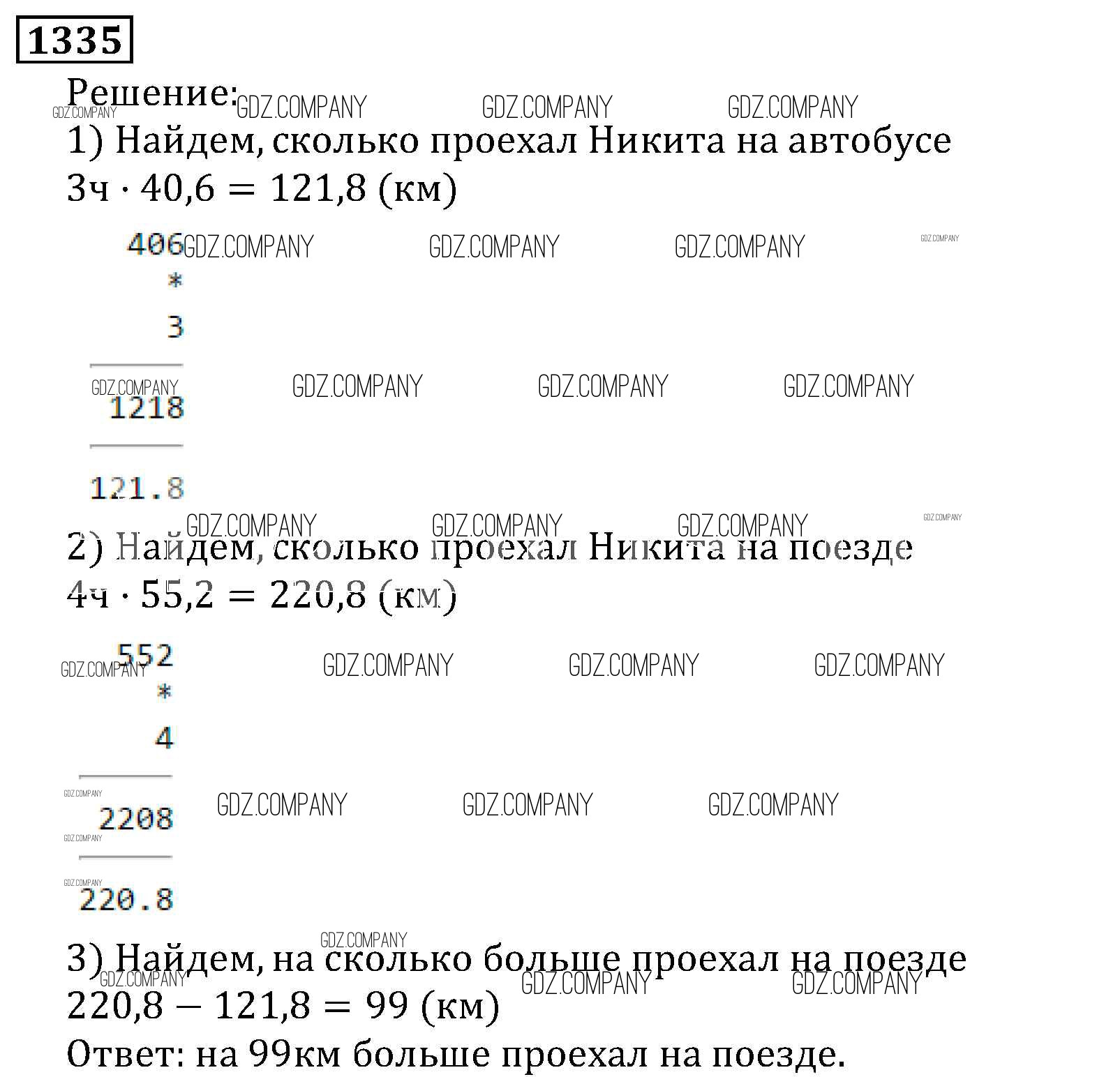 Здесь готовые ответы по Математике за 5 (пятый) класс от Виленкин, Жохов, Чесноков, Шварцбурд Учебник (издательство: Мнемозина от 2013 г.) № 1335