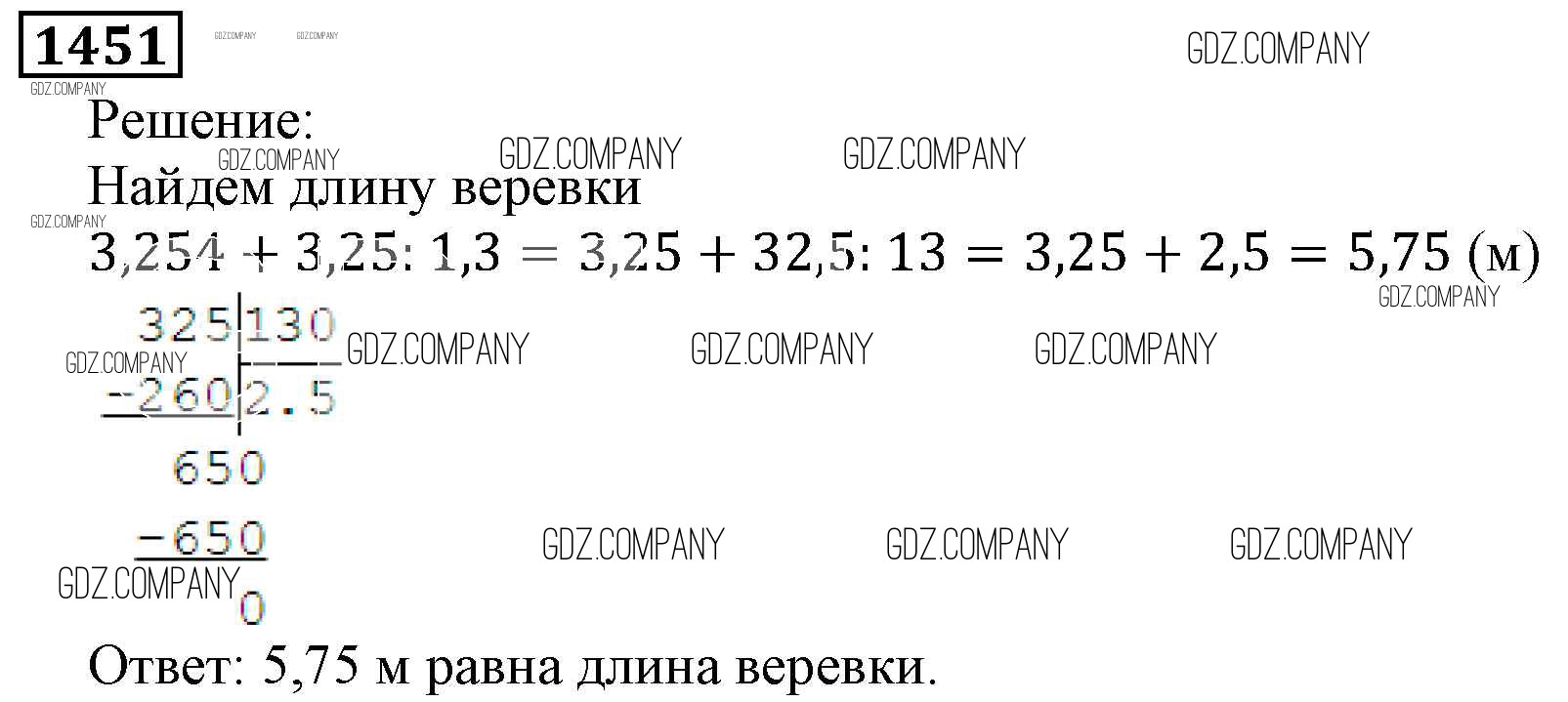 Здесь готовые ответы по Математике за 5 (пятый) класс от Виленкин, Жохов, Чесноков, Шварцбурд Учебник (издательство: Мнемозина от 2013 г.) № 1451