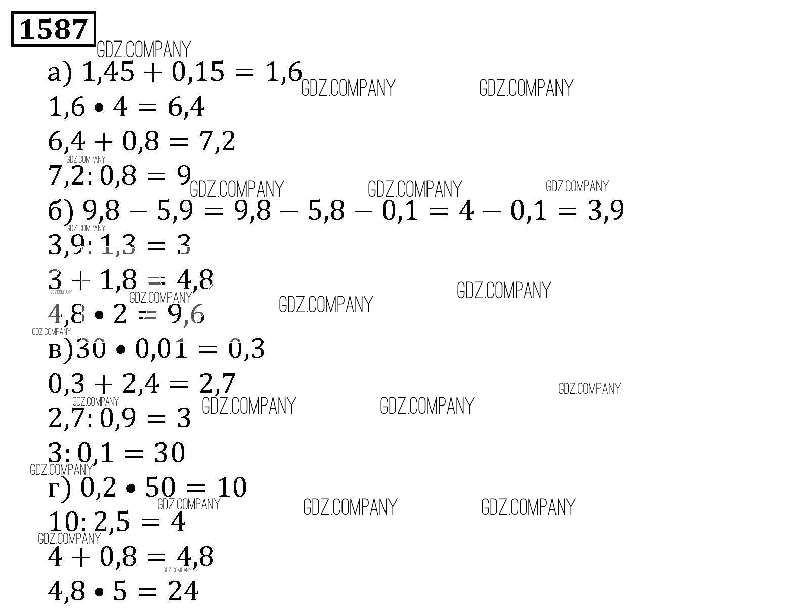 Здесь готовые ответы по Математике за 5 (пятый) класс от Виленкин, Жохов, Чесноков, Шварцбурд Учебник (издательство: Мнемозина от 2013 г.) № 1587