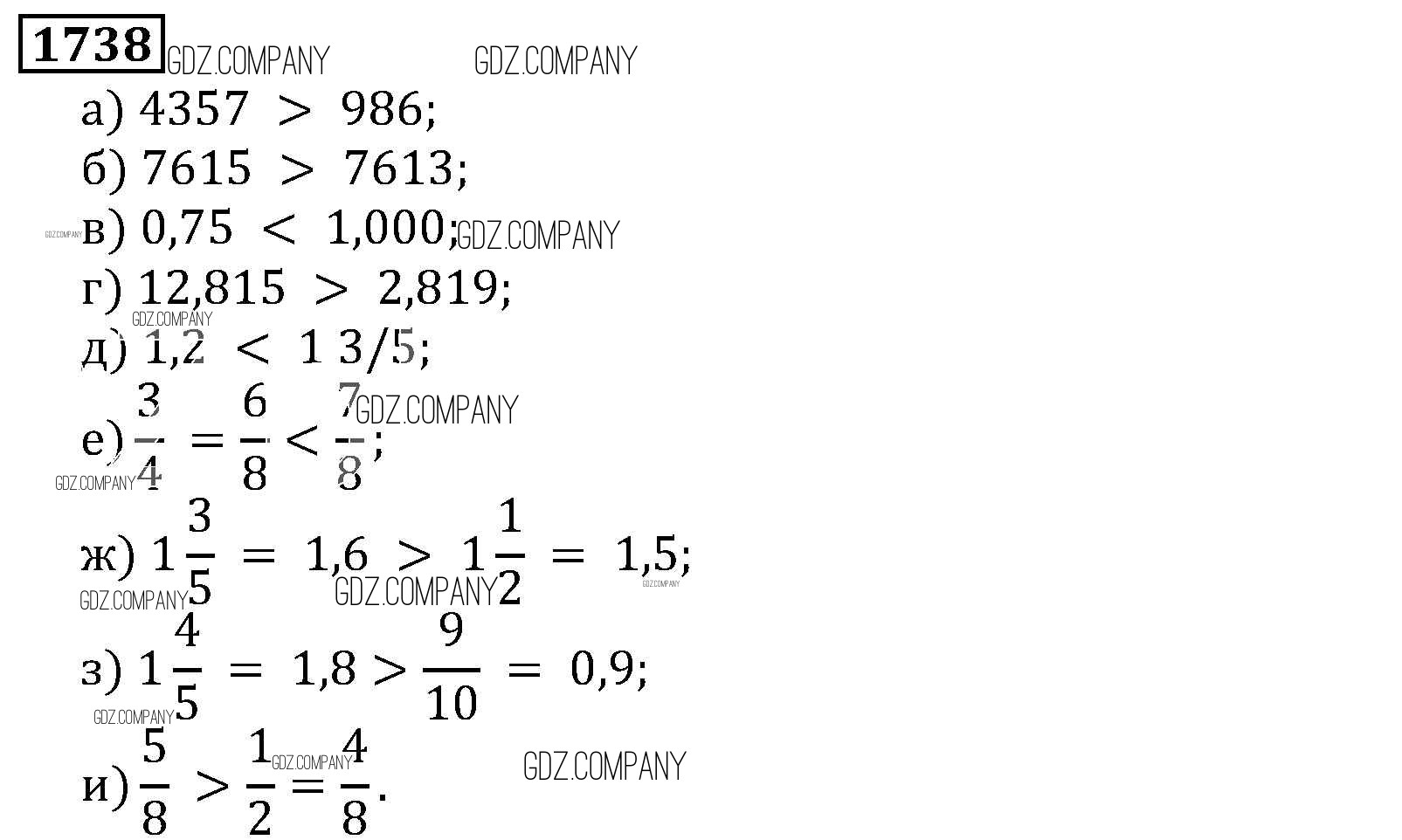 Здесь готовые ответы по Математике за 5 (пятый) класс от Виленкин, Жохов, Чесноков, Шварцбурд Учебник (издательство: Мнемозина от 2013 г.) № 1738