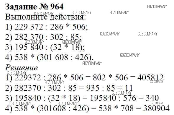 Здесь готовые ответы по Математике за 5 (пятый) класс от Виленкин, Жохов, Чесноков, Шварцбурд Учебник (издательство: Мнемозина от 2013 г.) № 964