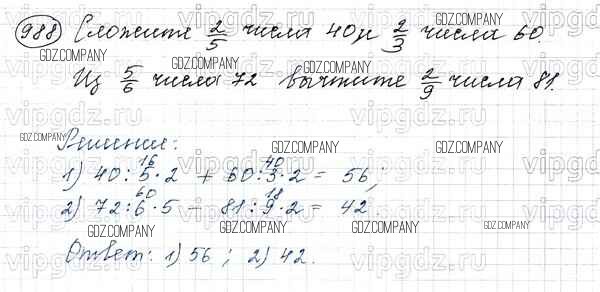 Здесь готовые ответы по Математике за 5 (пятый) класс от Виленкин, Жохов, Чесноков, Шварцбурд Учебник (издательство: Мнемозина от 2013 г.) № 988