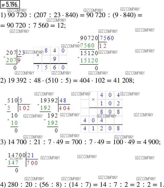 Здесь готовые ответы по Математике за 5 (пятый) класс от Виленкин, Жохов, Чесноков, Александрова, Шварцбурд Учебник (издательство: Просвещение от 2021 г.) № 5.196
