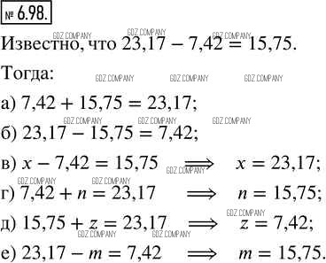 Здесь готовые ответы по Математике за 5 (пятый) класс от Виленкин, Жохов, Чесноков, Александрова, Шварцбурд Учебник (издательство: Просвещение от 2021 г.) № 6.98