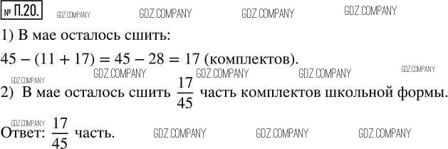 Здесь готовые ответы по Математике за 5 (пятый) класс от Виленкин, Жохов, Чесноков, Александрова, Шварцбурд Учебник (издательство: Просвещение от 2021 г.) № П.20