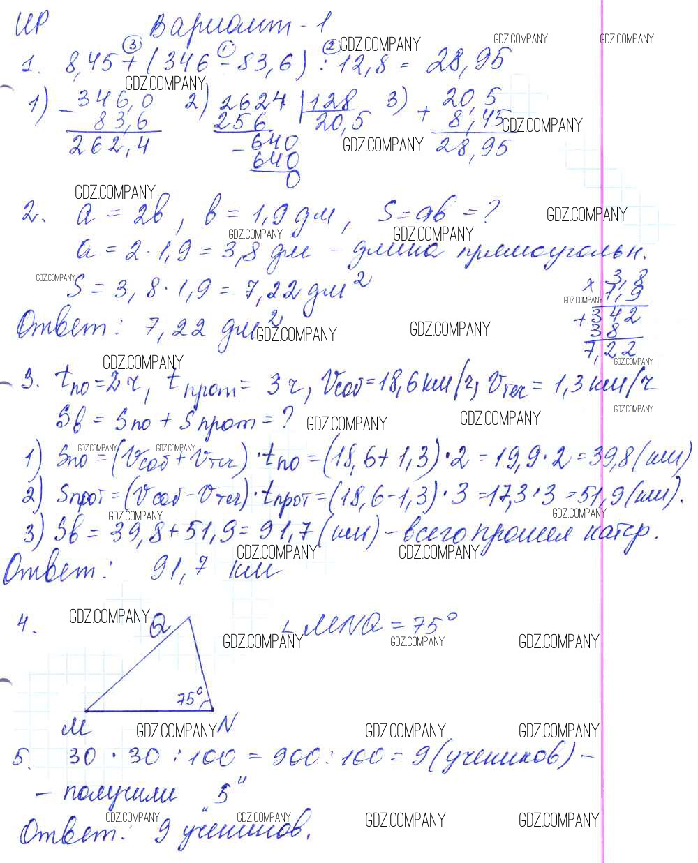 Здесь готовые ответы по Математике за 5 (пятый) класс от Жохов, Крайнева Контрольные работы (издательство: Мнемозина от 2012 г.) № 1