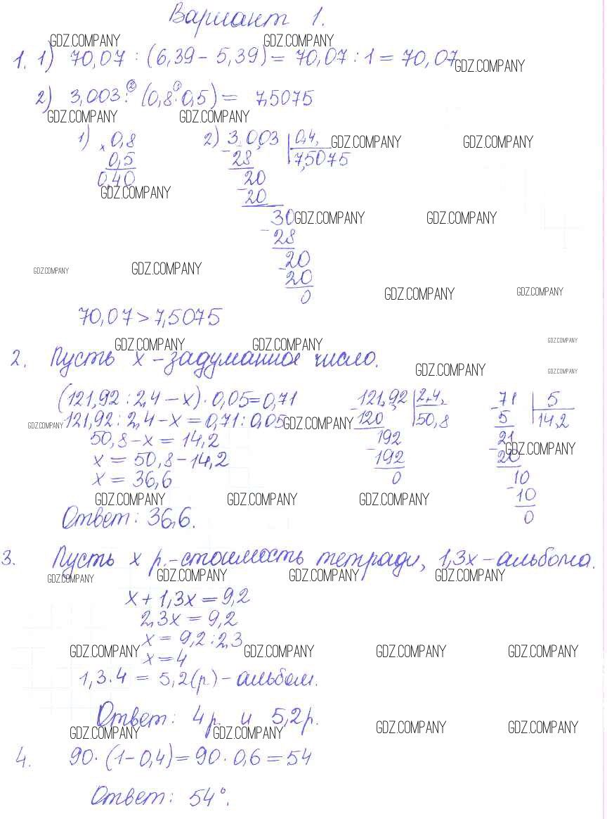 Здесь готовые ответы по Математике за 5 (пятый) класс от Журавлев, Свентковский Контрольные и самостоятельные работы УМК (издательство: Экзамен от 2015 г.) № 1