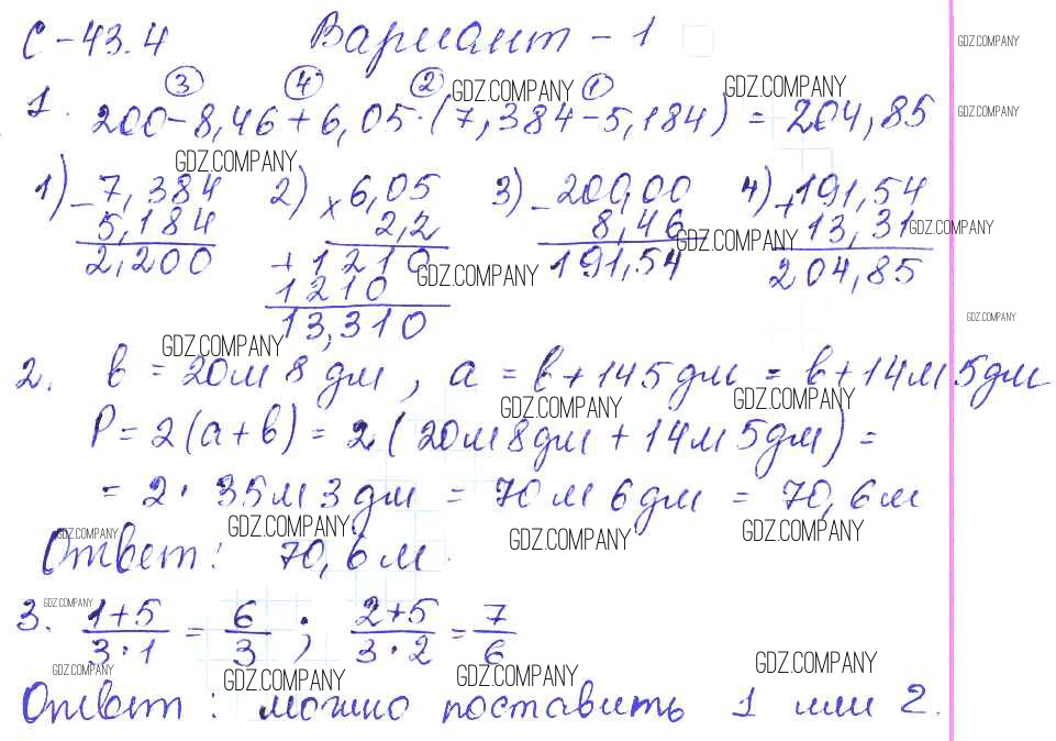 Здесь готовые ответы по Математике за 5 (пятый) класс от Зубарева, Шанцева, Мильштейн Самостоятельные работы (издательство: Мнемозина от 2016 г.) № 1
