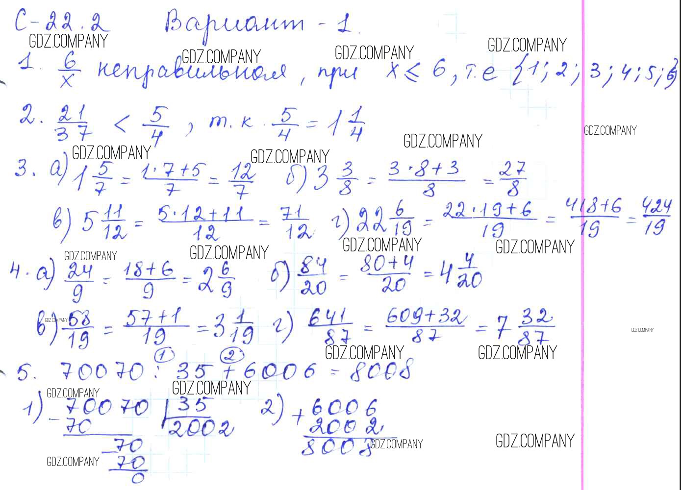 Здесь готовые ответы по Математике за 5 (пятый) класс от Зубарева, Шанцева, Мильштейн Самостоятельные работы (издательство: Мнемозина от 2016 г.) № 1