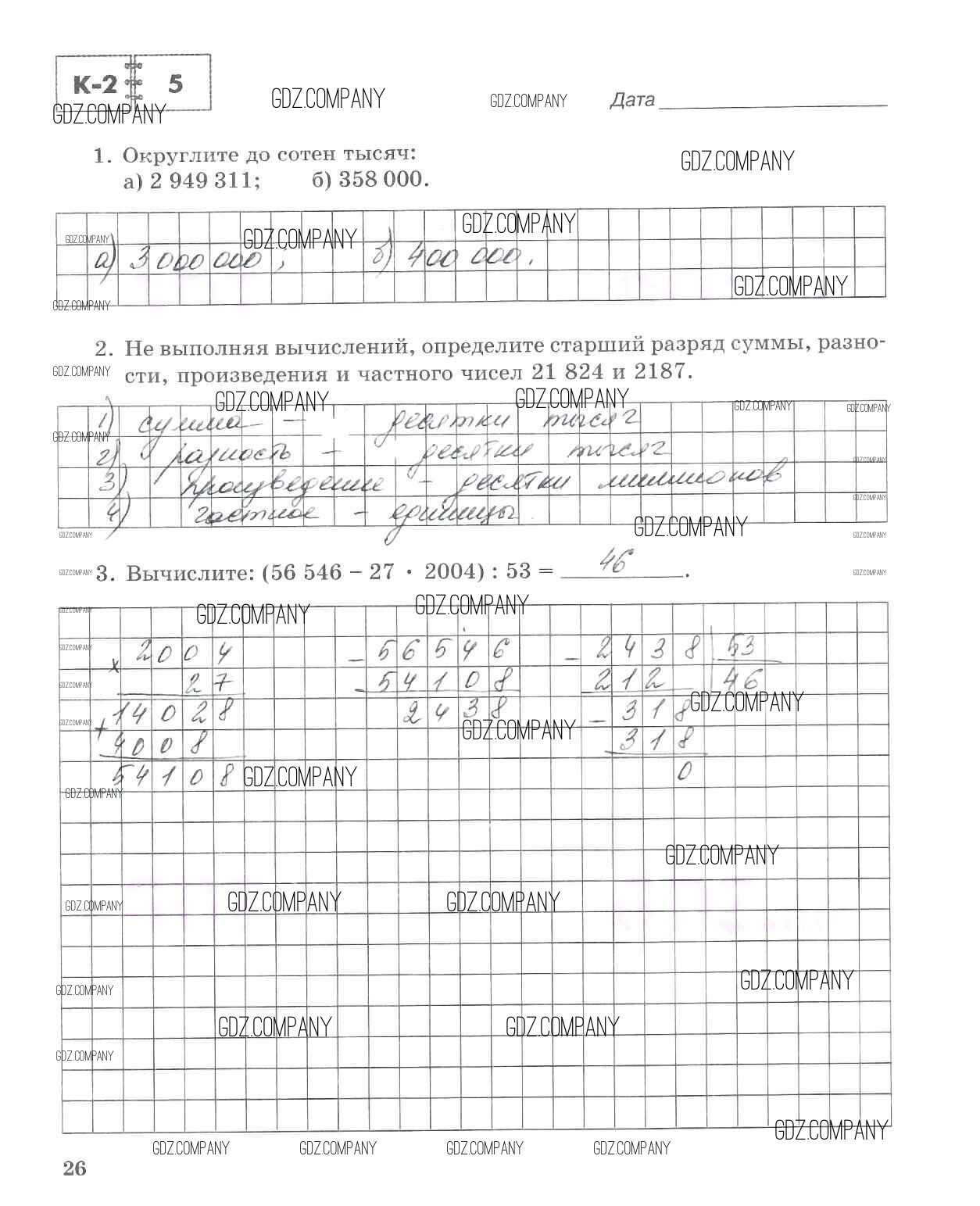 Здесь готовые ответы по Математике за 5 (пятый) класс от Зубарева, Лепешонкова Тетрадь для контрольных работ (издательство: Мнемозина от 2018 г.) № 26