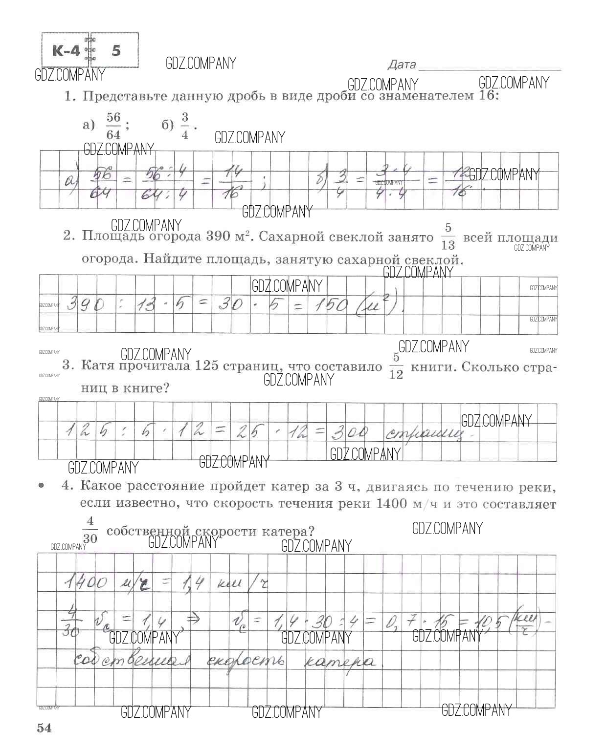 Здесь готовые ответы по Математике за 5 (пятый) класс от Зубарева, Лепешонкова Тетрадь для контрольных работ (издательство: Мнемозина от 2018 г.) № 54