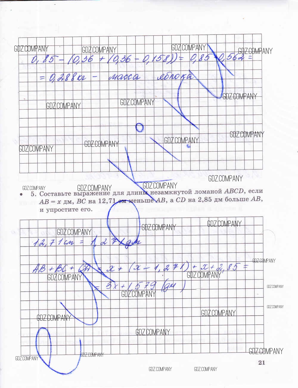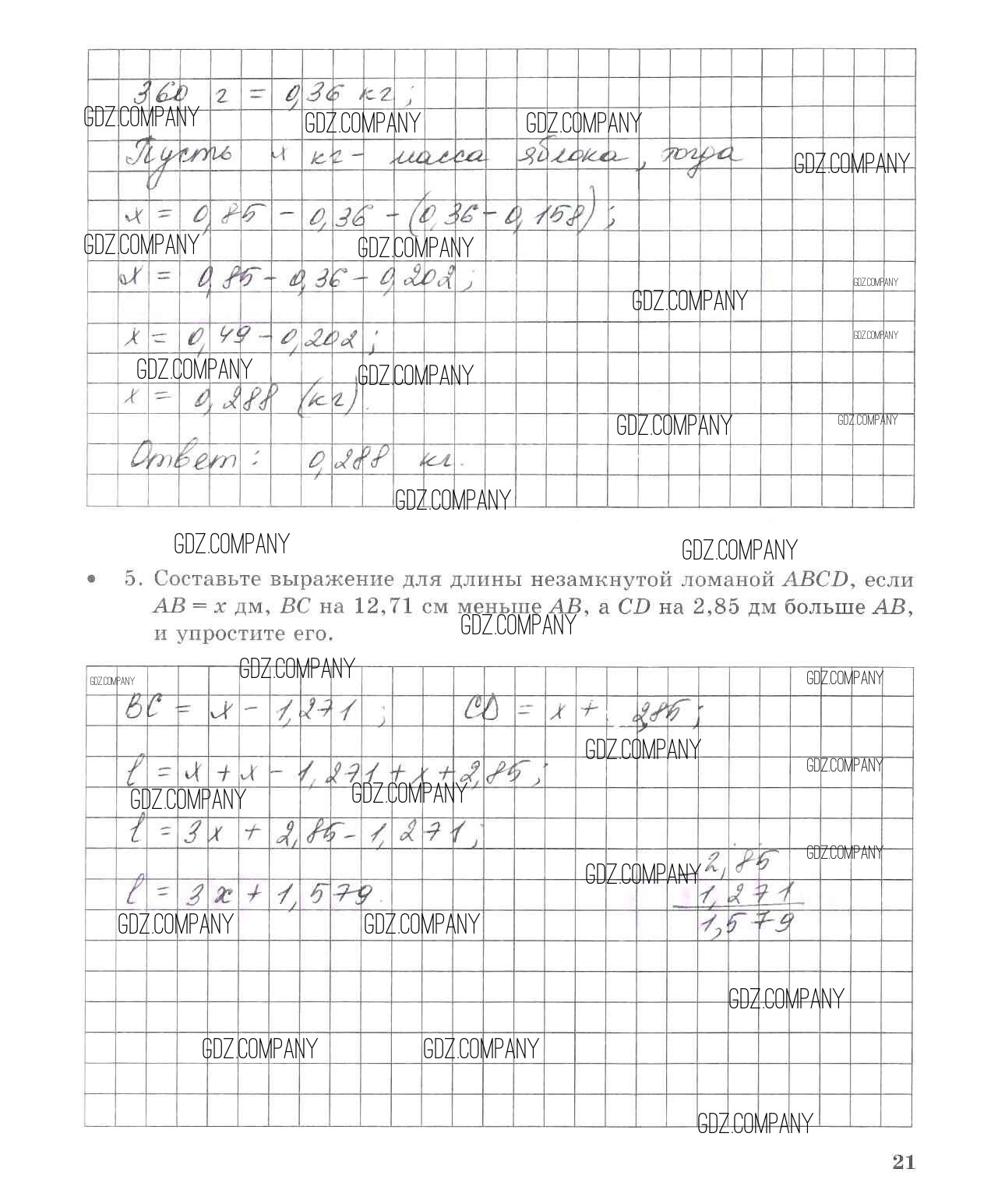 Здесь готовые ответы по Математике за 5 (пятый) класс от Зубарева, Лепешонкова Тетрадь для контрольных работ (издательство: Мнемозина от 2018 г.) № 21