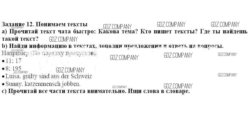 Здесь готовые ответы по Немецкому языку за 5 (пятый) класс от Аверин, Джин, Рорман, Збранкова Учебник Horizonte (издательство: Просвещение от 2016 г.) № 12