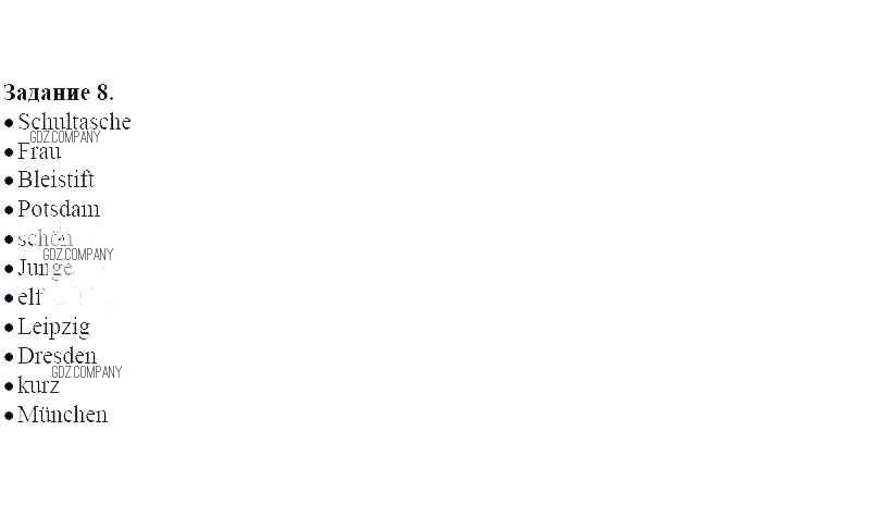 Здесь готовые ответы по Немецкому языку за 5 (пятый) класс от Радченко, Хебелер, Стёпкин Рабочая тетрадь Alles Klar! (издательство: Дрофа от 2015 г.) № 8