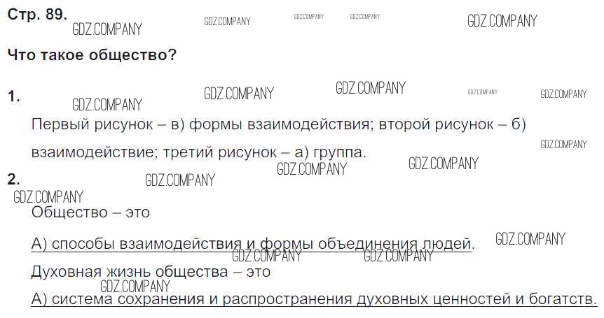 Здесь готовые ответы по Обществознанию за 5 (пятый) класс от Болотина, Мишина Рабочая тетрадь Вертикаль (издательство: Дрофа от 2019 г.) № стр. 89