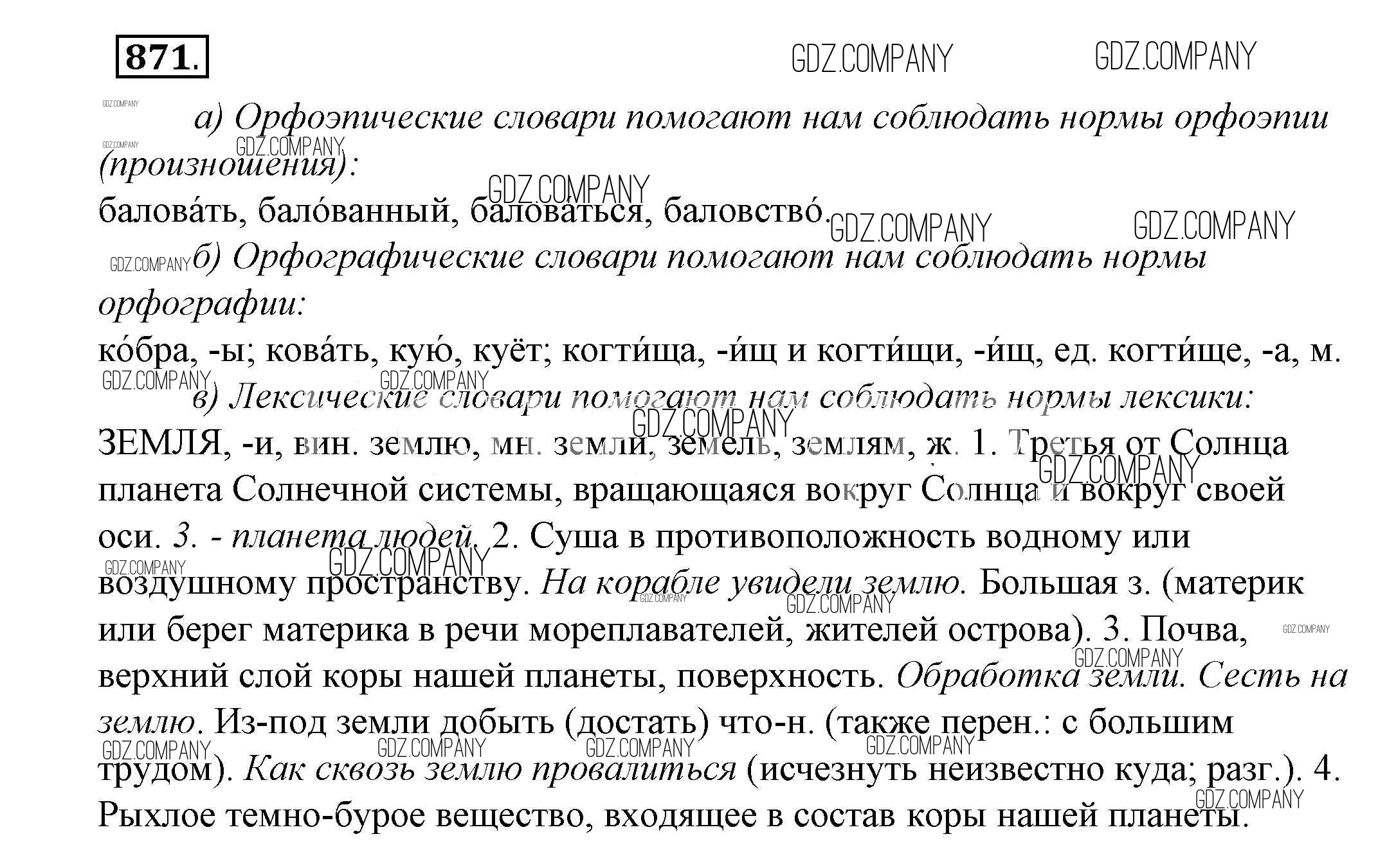 Здесь готовые ответы по Русскому языку за 5 (пятый) класс от Купалова, Еремеева, Лидман-Орлова Учебник (издательство: Дрофа от 2015 г.) № 871
