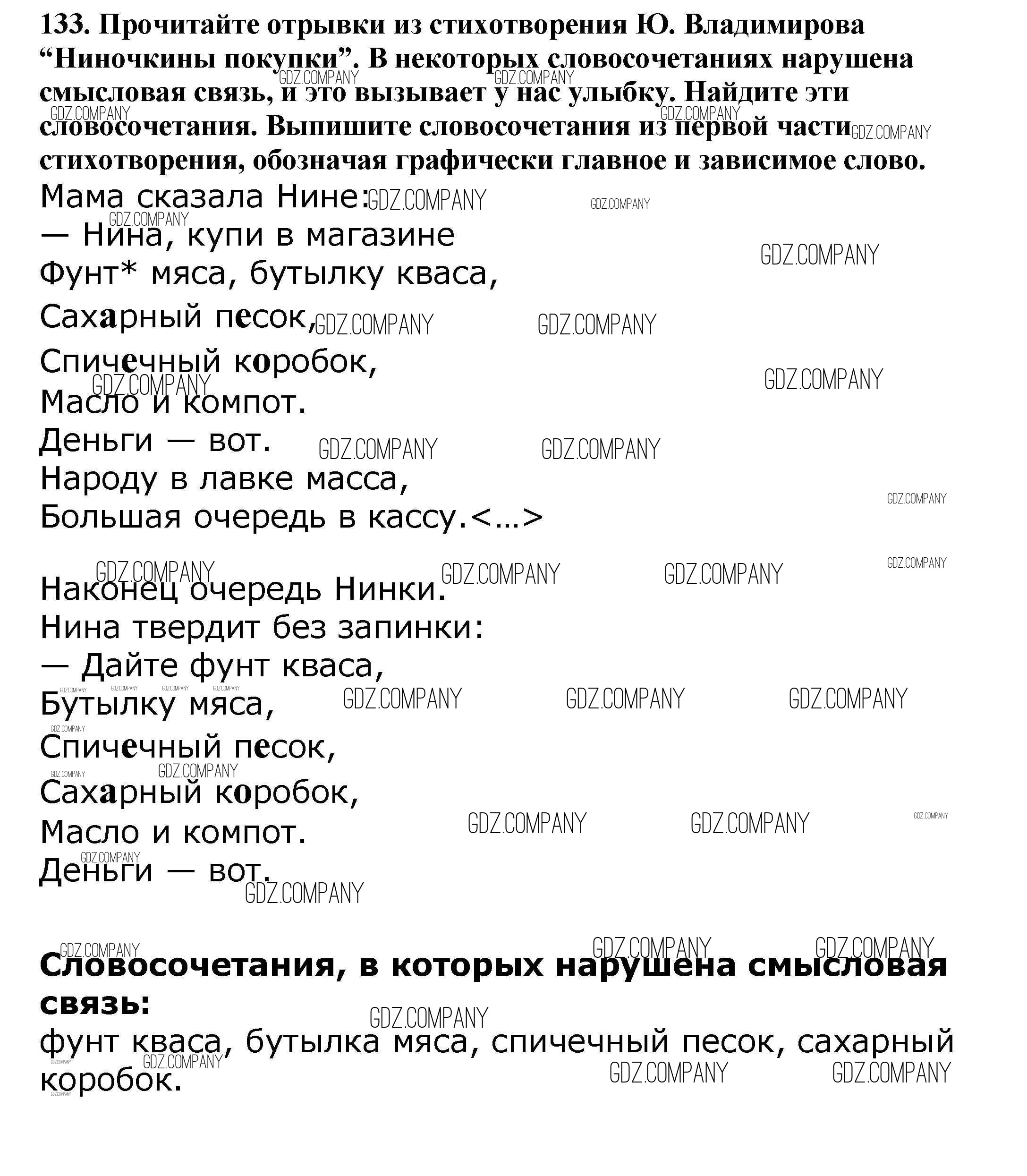 Здесь готовые ответы по Русскому языку за 5 (пятый) класс от Баранов, Ладыженская, Тростенцова, Кулибаба, Григорян Учебник (издательство: Просвещение от 2016 г.) № 133