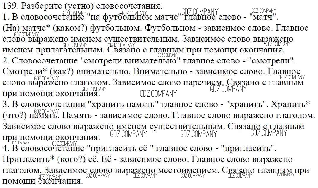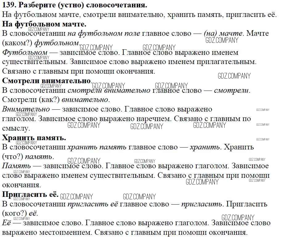 Здесь готовые ответы по Русскому языку за 5 (пятый) класс от Баранов, Ладыженская, Тростенцова, Кулибаба, Григорян Учебник (издательство: Просвещение от 2016 г.) № 139