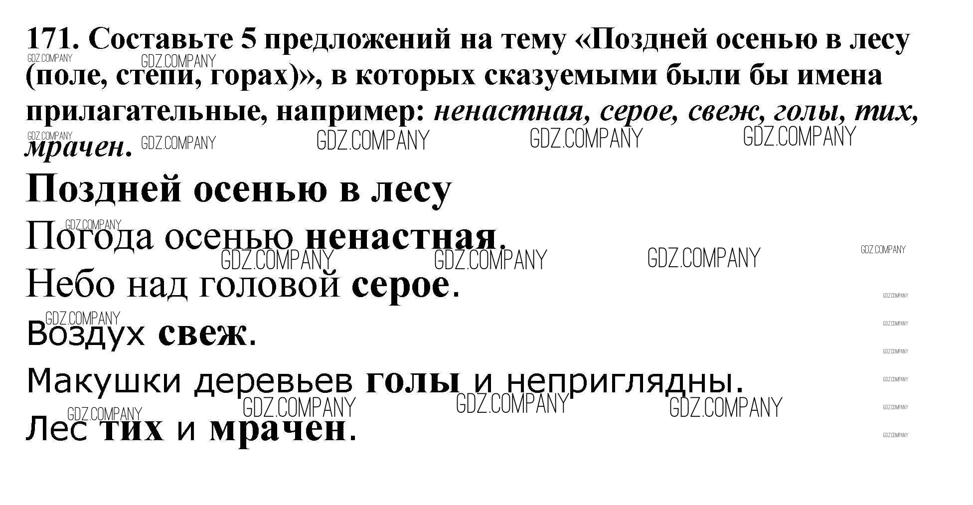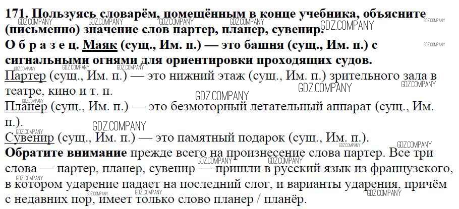 Здесь готовые ответы по Русскому языку за 5 (пятый) класс от Баранов, Ладыженская, Тростенцова, Кулибаба, Григорян Учебник (издательство: Просвещение от 2016 г.) № 171
