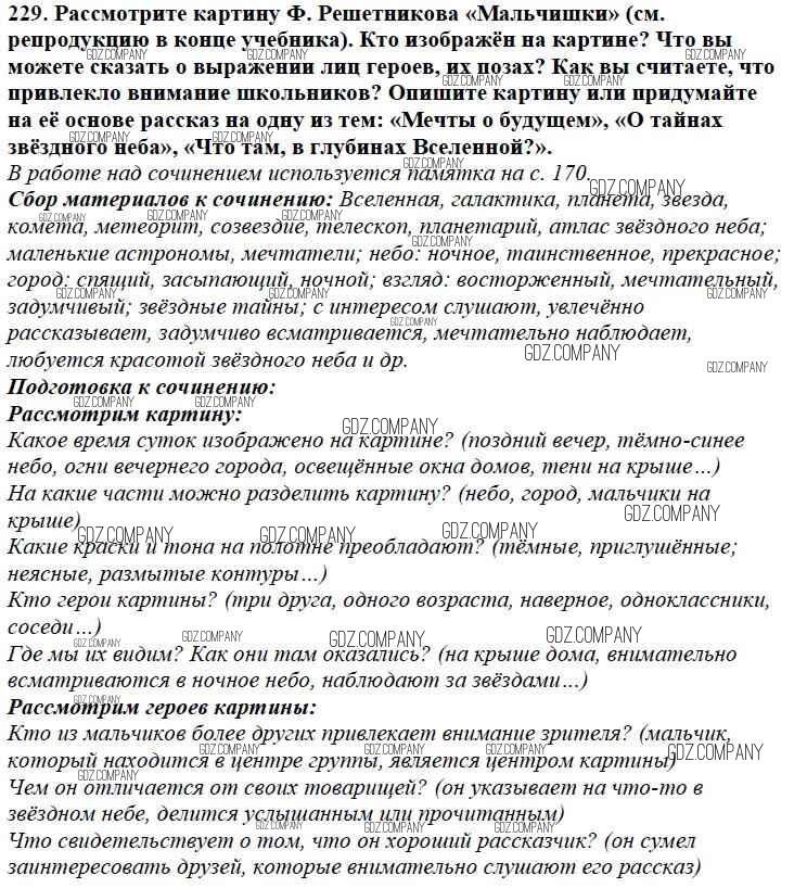 Здесь готовые ответы по Русскому языку за 5 (пятый) класс от Баранов, Ладыженская, Тростенцова, Кулибаба, Григорян Учебник (издательство: Просвещение от 2016 г.) № 229