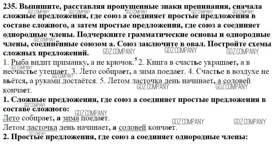 Здесь готовые ответы по Русскому языку за 5 (пятый) класс от Баранов, Ладыженская, Тростенцова, Кулибаба, Григорян Учебник (издательство: Просвещение от 2016 г.) № 235