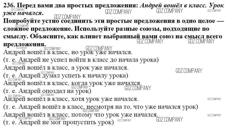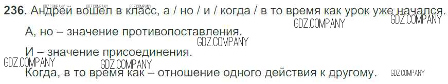 Здесь готовые ответы по Русскому языку за 5 (пятый) класс от Баранов, Ладыженская, Тростенцова, Кулибаба, Григорян Учебник (издательство: Просвещение от 2016 г.) № 236