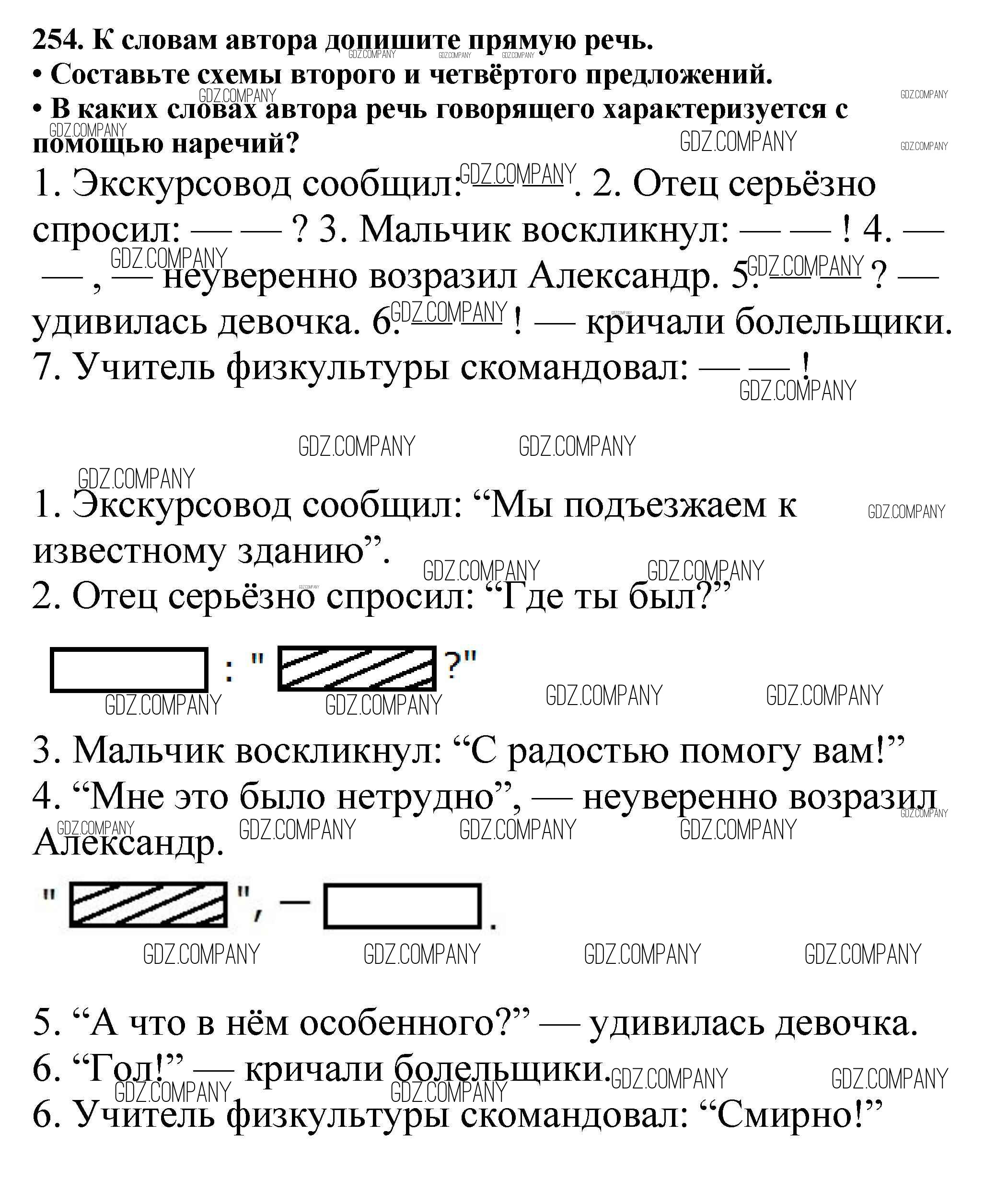 Здесь готовые ответы по Русскому языку за 5 (пятый) класс от Баранов, Ладыженская, Тростенцова, Кулибаба, Григорян Учебник (издательство: Просвещение от 2016 г.) № 254