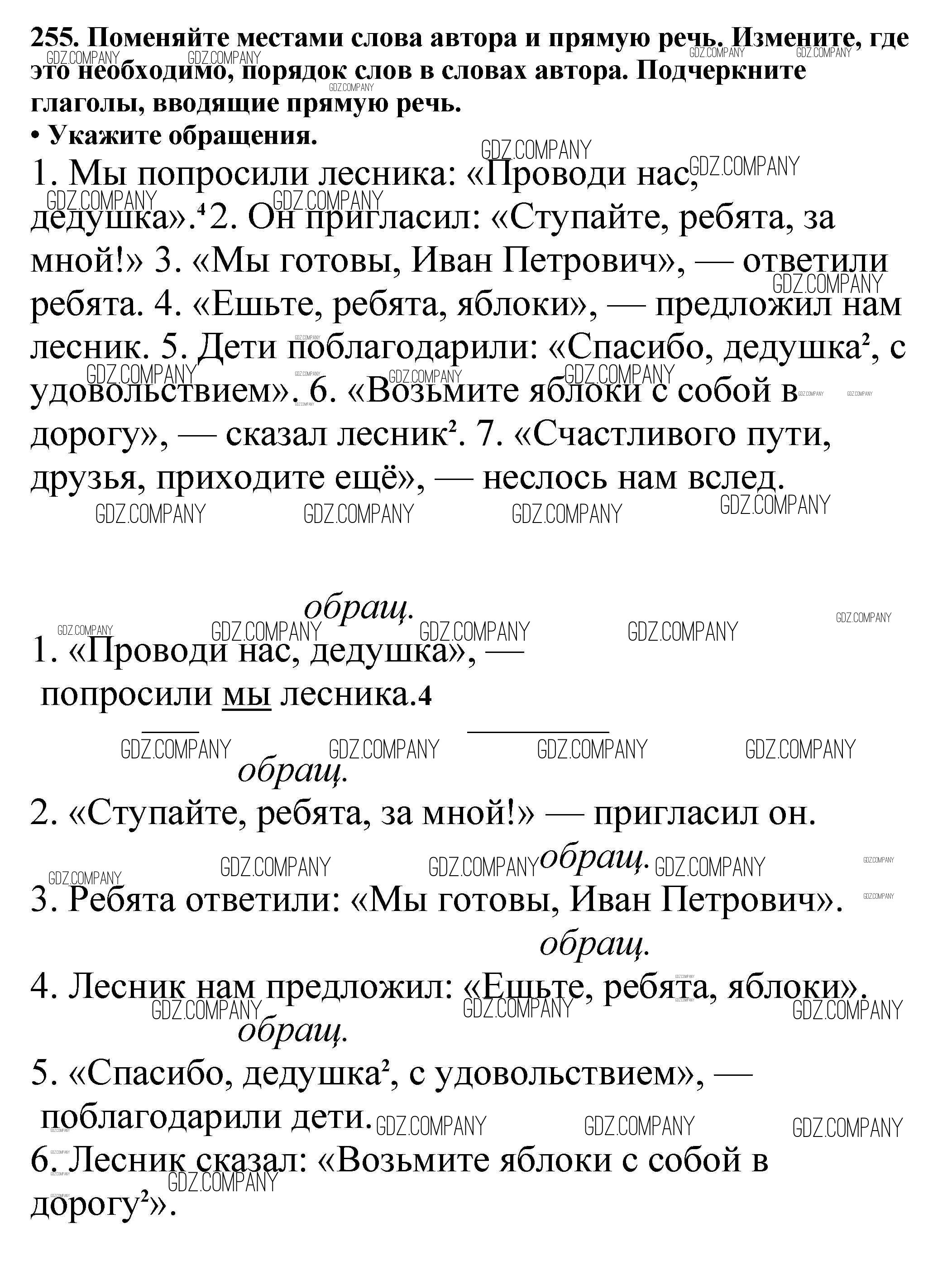 Здесь готовые ответы по Русскому языку за 5 (пятый) класс от Баранов, Ладыженская, Тростенцова, Кулибаба, Григорян Учебник (издательство: Просвещение от 2016 г.) № 255